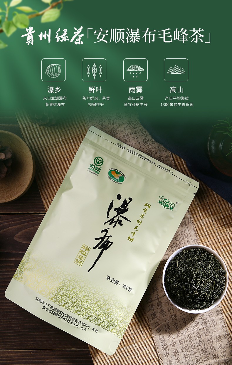 瀑布茶品牌是安順市人民政府主打茶葉品牌,省級重點(diǎn)打造區(qū)域公共品牌,屬貴州五大名茶,先后獲得獲“中國農(nóng)產(chǎn)品區(qū)域公用品牌”、“貴州省著名商標(biāo)”、“貴州省名牌產(chǎn)品”等榮譽(yù)稱號。近年來,在各級部門大力推動(dòng)下,瀑布茶品牌不斷發(fā)展壯大。截止目前,現(xiàn)有瀑布茶品牌加盟企業(yè)23家,輻射茶園面積200000余畝,其中綠色食品認(rèn)證茶園基地面積7000余畝,有機(jī)食品認(rèn)證基地面積2500畝。擁有“瀑布毛峰”、“瀑布翠芽”、“瀑布紅茶”、“瀑布翠龍”等產(chǎn)品,多次獲得“中綠杯”、“中茶杯”、“華茗杯”等大獎(jiǎng);分別榮獲第14屆中國國際農(nóng)產(chǎn)品交易會金獎(jiǎng)、第18屆中國綠色食品博覽會金獎(jiǎng)、“黃山杯”首屆全國傳統(tǒng)名茶產(chǎn)品質(zhì)量特別金獎(jiǎng)、安順十大旅游商品等殊榮及稱號。
