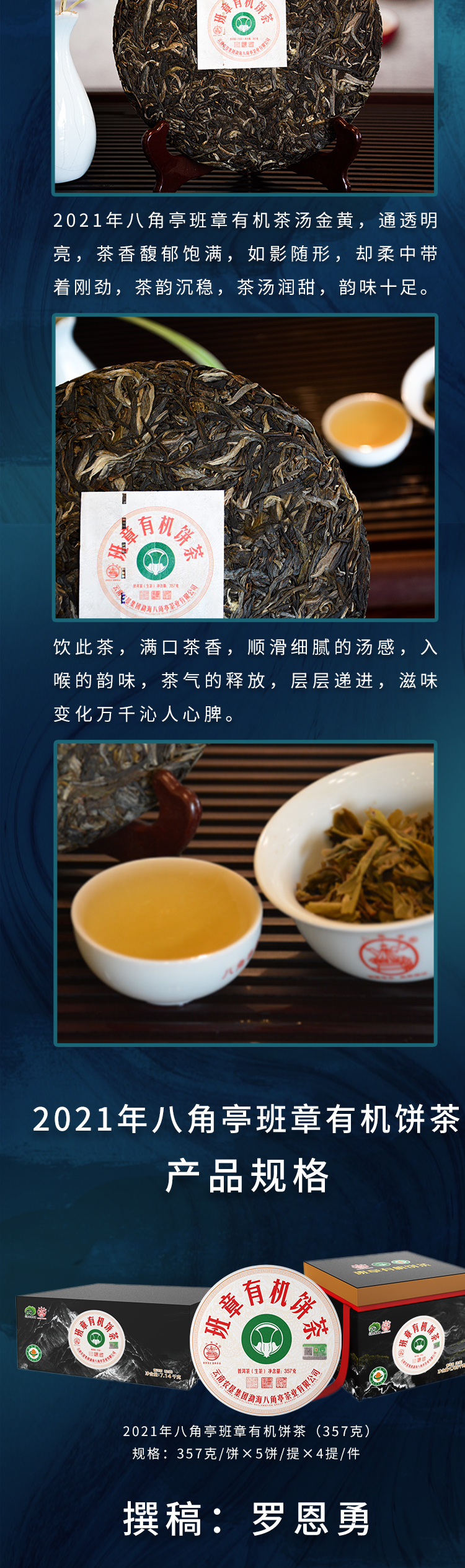 ??——八角亭茶業(yè)公司:經(jīng)營(yíng)方式為生產(chǎn)加工、銷售,主營(yíng)普洱茶、緊壓茶、兼營(yíng)毛茶收購(gòu)。目前以生產(chǎn)、加工、銷售“八角亭”系列普洱茶為主,是云南省農(nóng)業(yè)產(chǎn)業(yè)化龍頭企業(yè)。“八角亭”商標(biāo)獲得云南省著名商標(biāo),“八角亭”牌普洱茶榮獲云南省名牌產(chǎn)品和云南省名牌農(nóng)產(chǎn)品。已先后通過(guò)工業(yè)生產(chǎn)許可證、ISQ9001與HCCP認(rèn)證、云茶牌認(rèn)證(YC)等項(xiàng)工作,在歷次專業(yè)評(píng)比中“八角亭”普洱茶多次獲得特等金獎(jiǎng)和金獎(jiǎng)。2017年5月,“八角亭”牌老班章茶葉獲得了有機(jī)茶資格認(rèn)證。八角亭茶業(yè)公司多次進(jìn)行了技術(shù)改造,現(xiàn)已建立了標(biāo)準(zhǔn)化生產(chǎn)車間和設(shè)備,年設(shè)計(jì)生產(chǎn)量達(dá)3000噸,是整個(gè)公司的主體核心企業(yè)。