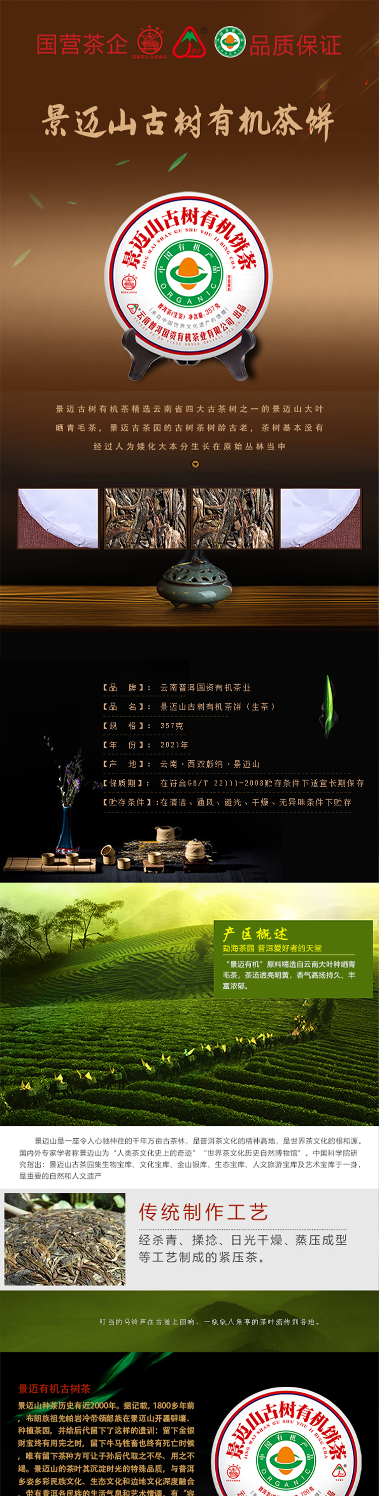 ??——八角亭茶業公司:經營方式為生產加工、銷售,主營普洱茶、緊壓茶、兼營毛茶收購。目前以生產、加工、銷售“八角亭”系列普洱茶為主,是云南省農業產業化龍頭企業。“八角亭”商標獲得云南省著名商標,“八角亭”牌普洱茶榮獲云南省名牌產品和云南省名牌農產品。已先后通過工業生產許可證、ISQ9001與HCCP認證、云茶牌認證(YC)等項工作,在歷次專業評比中“八角亭”普洱茶多次獲得特等金獎和金獎。2017年5月,“八角亭”牌老班章茶葉獲得了有機茶資格認證。八角亭茶業公司多次進行了技術改造,現已建立了標準化生產車間和設備,年設計生產量達3000噸,是整個公司的主體核心企業。