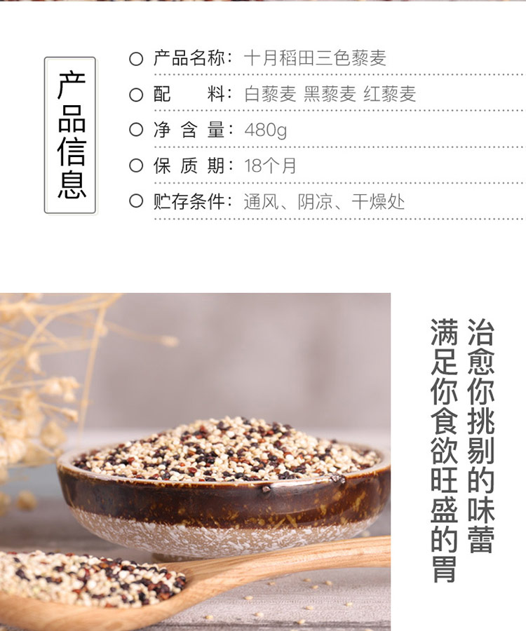 十月稻田三色藜麥紅藜麥、黑藜麥白藜麥雜糧有機粗糧代餐480g